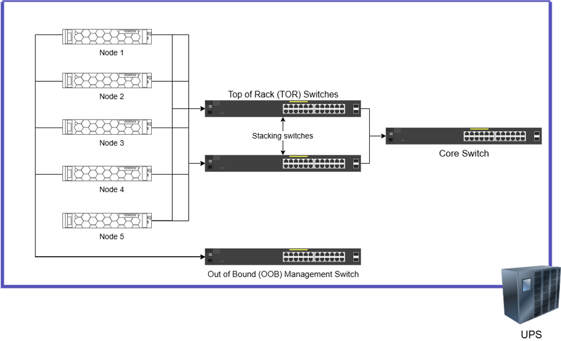 - Network & Power Modernization: Implementing redundant “top-of-rack” switches (TOR) for immediate failover and a robust uninterruptible power supply (UPS) to protect against outages.
